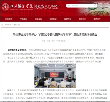 1.参加开展课程集体备课会:深入学习全国两会精神、党的二十届三中全会精神,探讨如何将其融入思政课程教学,提高课程的时效性和针对性。