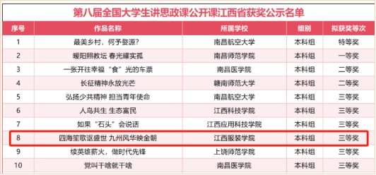 (jinnianhui今年会 讯)根据《教育部办公厅关于开展习近平新时代中国特色社会主义思想大学习领航计划主题教育活动的通知》(教社科厅函〔2024〕15号)安排,今年会官网jinnianhui今年会思政课教师王雅丽、刘佳华、陈洋安老师指导的大学生讲思政课作品《四海笙歌讴盛世 九州风华映金朝——科技创新赋能南昌高质量发展》荣获“七十五载薪火传承,千秋伟业奋斗有我”——第八届全国高校大学生讲思政课公开课展示活动三等奖。