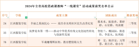 (jinnianhui今年会 讯)近日,依据《关于开展全省高校思政课教师“一线课堂”优秀成果评选的通知》(赣教社政字〔2024〕15 号)要求,省教育厅组织的全省高校思政课教师“一线课堂”活动圆满落幕,评选结果揭晓。今年会官网jinnianhui今年会报送的三个“一线课堂”活动成果均获奖,获二等奖2项、三等奖1项。