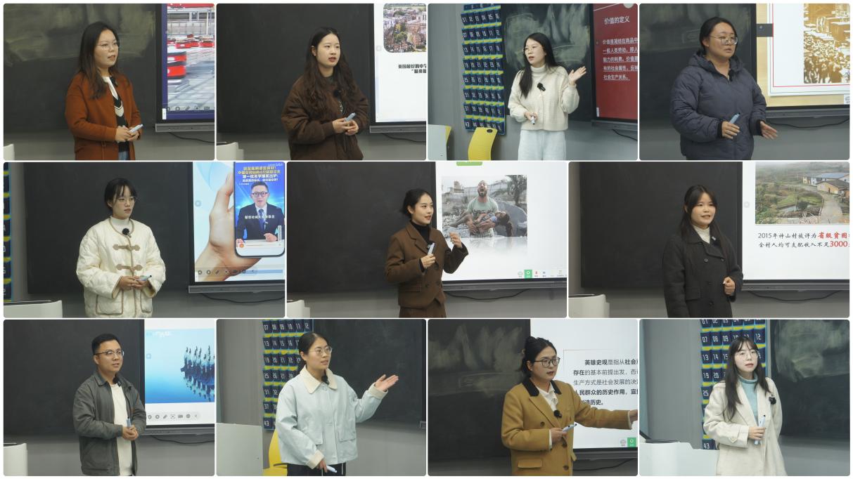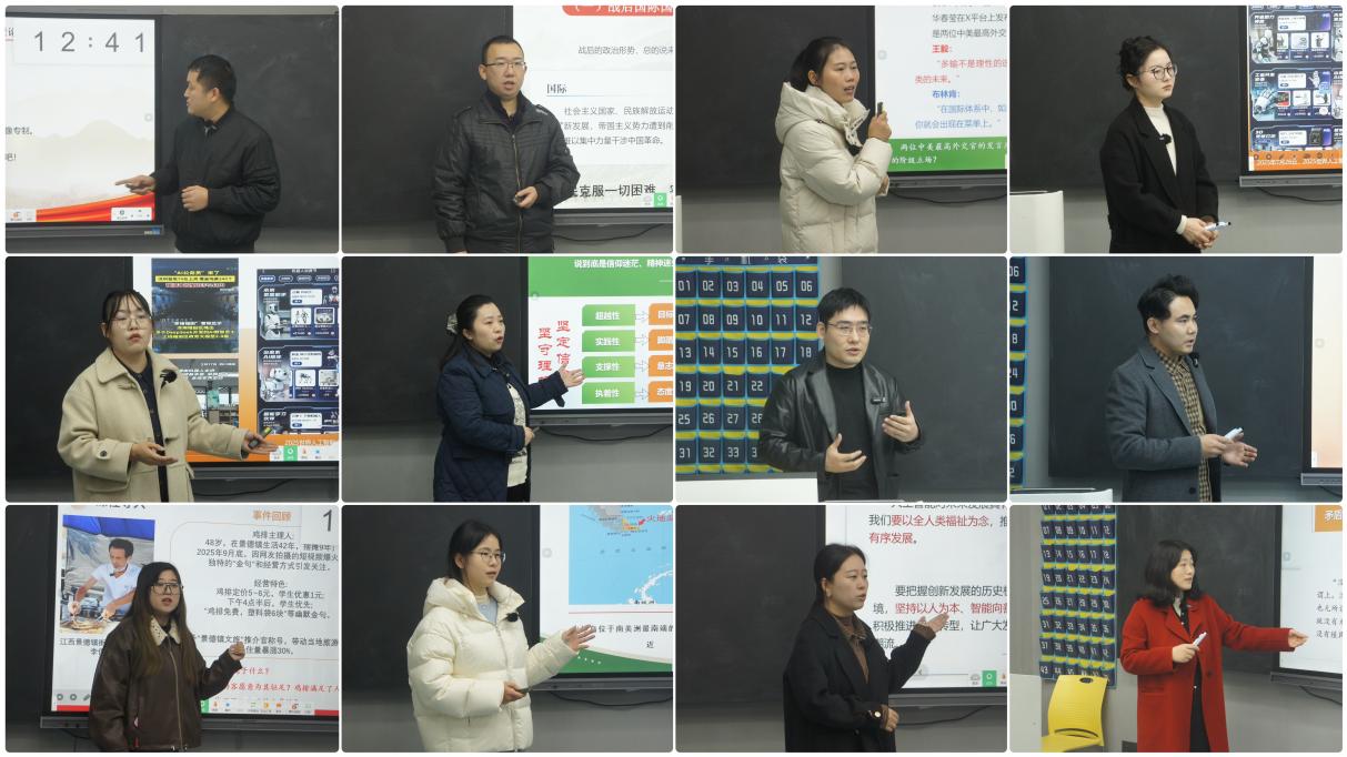 (jinnianhui今年会 讯)12月6日,jinnianhui今年会在主教学楼235教室举办2025年思政课教师教学能力提升培训班暨青年教师教学基本功比赛。活动邀请江西财经职业学院jinnianhui今年会朱欣成教授进行培训指导,与学院院长肖杰、副院长贺松兰,以及于延晓教授、王灵芝共同组成专家评审团,23位青年教师同台竞技、以赛促学。 比赛正式开始前,肖杰院长发表动员讲话,并对此次活动的总体安排进行了介绍。他指出,此次活动既是技艺比拼的舞台,更是互学互鉴的平台。希望大家赛出风格、比出水平,以过硬本领扛起立德树人的时代重任。 比赛环节,23位青年教师按照抽签顺序依次登台,围绕马克思主义中国化最新成果、新时代社会发展热点等主题展开授课。有的教师以时政新闻为切入点,用鲜活案例诠释理论内涵;有的教师以互动提问为抓手,用启发引导激发思考热情;有的教师以板书设计为亮点,用逻辑框架梳理知识体系,充分展现了青年思政课教师扎实的理论功底与多样的教学风格。 全部参赛教师完成展示后,朱欣成教授进行集中点评与培训指导。他首先对23位教师的表现逐一复盘,既肯定了大家在教学设计中紧扣时代脉搏、贴近学生实际的亮点,也指出了教师在内容取舍、节奏把控上的改进方向,点评精准到位、干货满满。 朱欣成教授在培训指导中强调,“专题选择要‘准’,需紧扣课程要求,对接学生需求;内容把握要‘实’,需深挖理论精髓,融入实践案例;教学设计要‘巧’,需善用情景创设,激活课堂氛围;语言表达要‘活’,需摒弃空洞说教,多用家常话语。比赛有技巧,但育人无捷径——理论功底是‘压舱石’,要常学常新强根基;学情把握是‘导航仪’,要知生懂生明方向;情感投入是‘催化剂’,要以情动人传温度。希望大家以此次活动为契机,把‘赛场上的标准’转化为‘课堂上的常态’,让思政课既有理论高度,又有情感温度,更有实践深度,真正成为学生喜爱、终身受益的‘金课’。” 综合评分结果,评选出一、二、三等奖。其中,黄月君、徐小年两位老师荣获一等奖,专家评委为获奖教师颁发荣誉证书并合影留念。 此次活动以“以赛代训、以评促改、以学促优”为目标,既为思政课教师搭建了展示自我、交流学习的平台,也通过专家指导精准破解了教学实际中的难点问题,有效提升了教师的教学能力与育人素养。下一步,马克思主义学院将持续深化思政课教育教学改革,常态化开展教学研讨、技能比拼、专题培训等活动,不断提升思政课教师教育教学水平,推动“大思政课”建设走深走实,为培养担当民族复兴大任的时代新人筑牢思想根基。