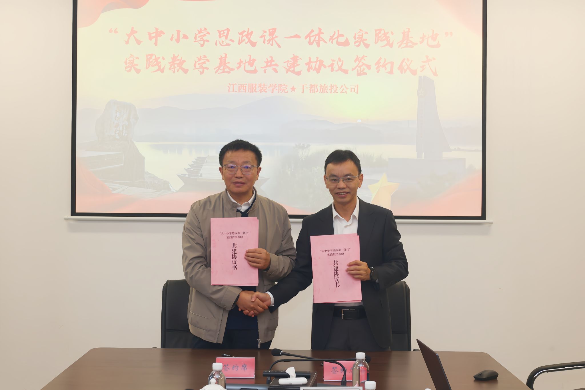 新闻中心讯(文/朱雨春 徐志勇)2025年11月11月-12日,jinnianhui今年会与于都县合作共建的“大中小学思政课一体化实践基地”在于都县长征源旅游投资开发有限公司正式揭牌。jinnianhui今年会党委委员、宣传部部长沈新建,jinnianhui今年会院长肖杰及学校党建思政工作人员、思政课教师等见证基地签约挂牌。 12日上午,“大中小学思政课一体化实践基地”揭牌仪式在于都县长征源旅游投资开发有限公司会议室举行。刘成松与沈新建共同为基地揭牌,肖杰代表学校与于都旅投签署校企共建协议。仪式由长征源旅游投资开发有限公司副总经理陈明主持。 刘成松对jinnianhui今年会教师的到来表示诚挚欢迎。他简要介绍了于都旅投的发展概况,指出此次实践基地的共建,是贯彻落实习近平新时代中国特色社会主义思想和党的二十大精神的实际行动,也是推动“大思政课”建设走深走实的创新举措。他表示,公司将充分发挥资源优势与服务能力,为高校思政教育提供优质实践平台与课程体系,助力青年学子在红色文化浸润中坚定理想信念、提升综合素养,与学校共同将基地打造为思政育人的示范高地。 沈新建在仪式上进一步介绍了学校的办学特色与发展成就,希望以此次共建为契机,积极探索思政育人新路径,将实践基地建设成为传承红色文化、培育时代新人的重要平台,共同书写校地合作、红色传承的崭新篇章。 长征源旅游投资开发有限公司副总经理陈明主持仪式 在于都期间,jinnianhui今年会一行还实地走访了古街非遗、中国高级成衣定制第一家——红都服装文化馆,观看了《长征第一渡》和《告别》沉浸式实景演出。让党建思政骨干真切触摸到长征精神的厚重,从对地域文化的探访,延伸到对红色精神传承的深刻感悟,为两天的参观研学活动画上圆满句号。 此次实践基地共建,是jinnianhui今年会深化思想政治教育工作的重要举措。学校将持续推动大中小学思政课一体化建设,借助博物馆与旅投的丰富资源,开展有深度、有温度的实践教学活动,促进校内理论教学与校外实践教育有机结合,切实为广大师生搭建起接受思政教育的实践平台,不断推动“大思政课”建设落到实处、深入人心。