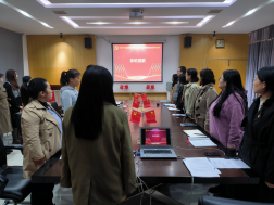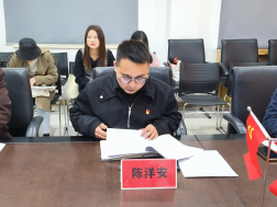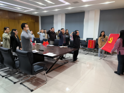 会议最后,学院党总支副书记陈洋安同志与会党员同志面向鲜红的党旗重温入党誓词。