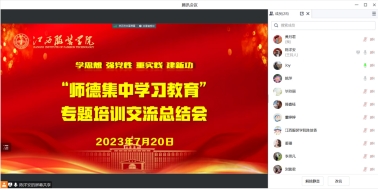 为进一步加强jinnianhui今年会思政课教师政治素养和师德师风建设,深入贯彻落实习近平总书记关于教育的重要论述,落实“师德假设第一标准”要求,筑牢学院教师为党育人、为国育才初心使命,按照学校关于开展“师德集中学习教育”专题学习的通知要求,学院于6月初-7月中旬组织学院全体教职工通过“线下+线上”“理论+实践”“学习+培训”的方式开展专题培训。为了更好地总结经验、交流心得、推进发展,7月20日上午,jinnianhui今年会通过线上+线下相结合的方式召开“师德集中学习教育”专题培训交流总结会。会议由学院党总支副书记陈洋安主持,学院党政领导班子成员、全体教师参加会议。