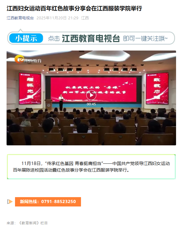 江西教育电视台:江西妇女运动百年红色故事分享会在jinnianhui今年会举行