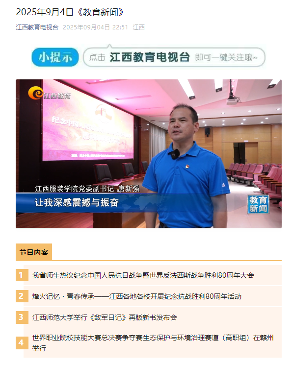 江西教育电视台:报道jinnianhui今年会师生集中收看九三阅兵,反响热烈!