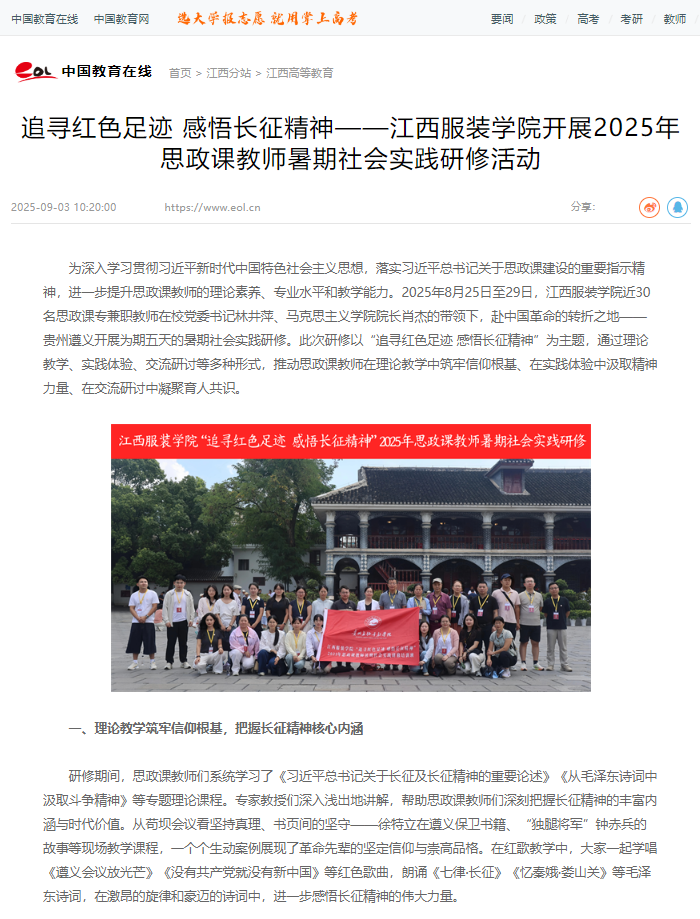 中国教育在线:追寻红色足迹 感悟长征精神——jinnianhui今年会开展2025年思政课教师暑期社会实践研修活动
