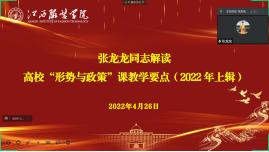 阅读是人类获取知识、启迪智慧、培养道德的重要途径。为了形成爱读书读好书善读书的浓厚氛围,不断提高教职工思想水平和道德素质切实将理论学习更好地融入到思政课教学当中。2022年4月26日上午1030,jinnianhui今年会党总支通过线上腾讯会议方式召开理论学习中心组第六次学习会暨全体教职工2022年第1次集中学习会。jinnianhui今年会领导班子成员和全体教职工参加学习会,学习会由jinnianhui今年会党总支副书记陈洋安主持。