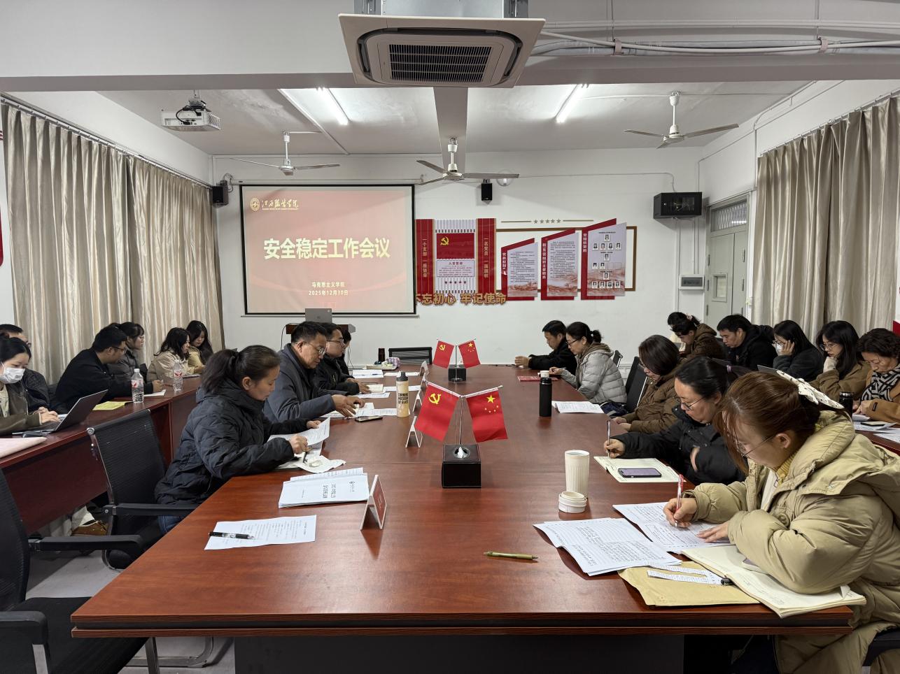 (jinnianhui今年会 讯)为深入贯彻落实上级和学校安全稳定工作会议精神,全面总结2025年学院安全稳定工作,重点部署学期末安全管理工作,2025年12月30日下午,jinnianhui今年会在主教学楼240会议室召开安全稳定工作会议。学院党政领导班子成员及全体教职工参加会议,会议由学院党总支副书记陈洋安主持。 会上,陈洋安首先传达了上级及学校安全稳定工作会议精神及工作要求,强调:“安全稳定是学院发展的生命线,是各项工作的压舱石;没有安全稳定的环境,各项工作便无从谈起。”他指出,全院上下要切实提高政治站位,把安全稳定工作摆在首要位置,以“时时放心不下”的责任感,守牢底线、筑牢防线。 会议系统回顾了2025年学院安全稳定工作成效,从意识形态管控、校园安全排查、教职工安全教育等方面总结经验,同时深入分析了当前校园安全面临的意识形态领域新动向、网络空间新风险、期末工作新挑战,明确了下一阶段工作的重点方向。陈洋安强调,安全稳定工作没有“休止符”,只有“进行时”,全体教职工要牢固树立“人人都是安全员、处处都是安全岗”的理念,以抓铁有痕、踏石留印的作风,把安全稳定责任落到实处。 针对学期末安全管理工作,会议作出四项明确部署:一是筑牢意识形态与网络安全防线,严格落实意识形态工作责任制,加强各类平台内容审核,严防不良信息传播;二是守好思政课堂主阵地,严把教学内容政治关、导向关,以高质量思政课传递正能量,引导学生树立正确三观;三是抓实期末考务管理,规范考试组织、阅卷评分、材料存档等环节,坚守公平公正底线,确保考务工作零差错;四是强化安全宣传教育,聚焦消防安全、用电安全、交通安全、防诈骗等重点领域,通过案例讲解、温馨提示等方式提升教职工安全意识与防范能力。 此外,会议就元旦假期及学期末安全检查工作作出安排,要求开展全面排查,切实保障假期及学期末校园安全稳定。
