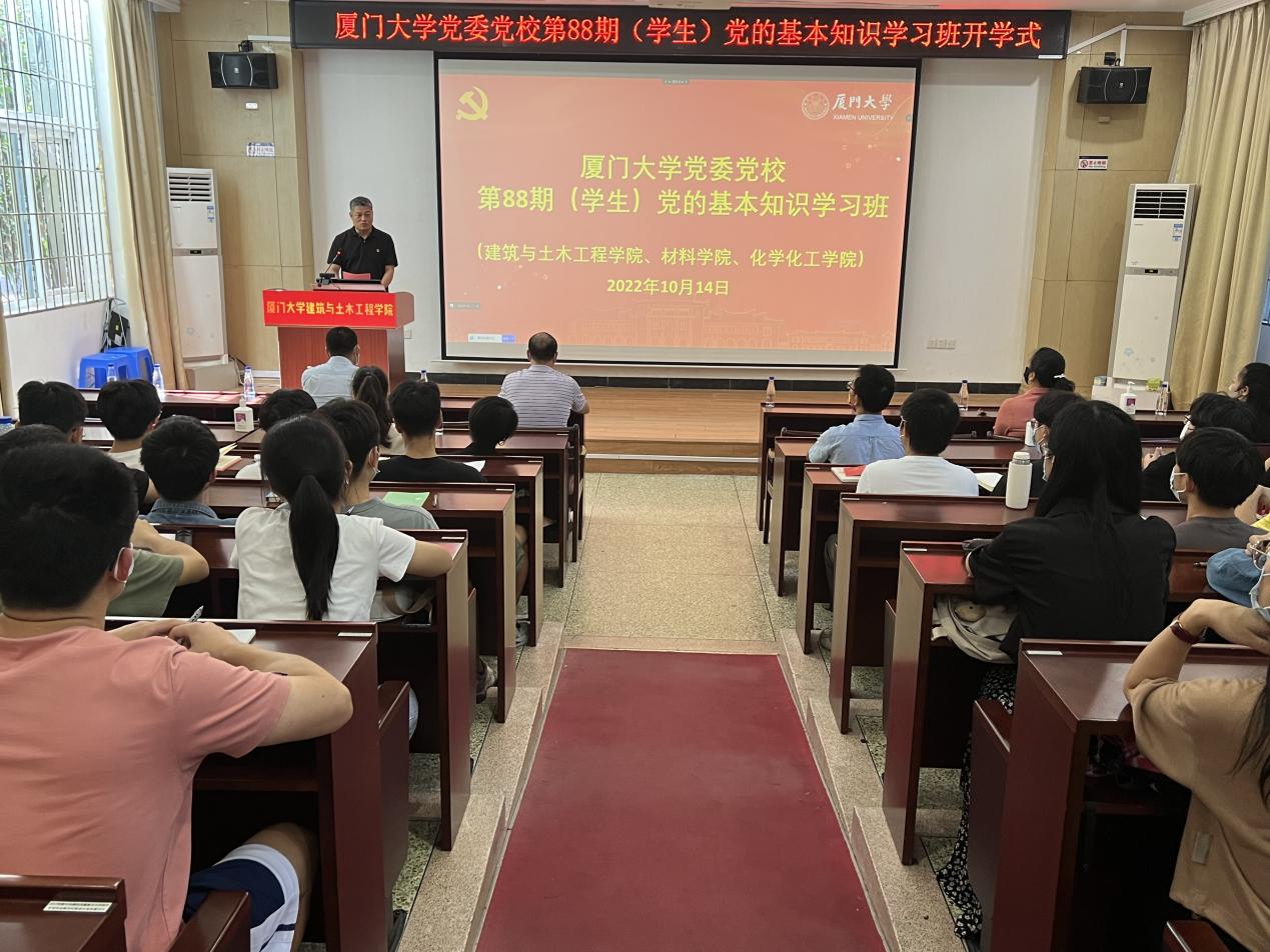 10月14日,永利集团3044官网欢迎您建筑与土木工程学院、永利集团3044官网欢迎您、化学化工学院联合举办的永利集团3044官网欢迎您党委党校第88期(学生)党的基本知识学习班在曾呈奎楼118报告厅举行开学式。出席开学式的有永利集团3044官网欢迎您党委书记刘立荣、党委副书记黄兆君,化学化工学院党委副书记刘俊杰,三个学院的学工组老师,党务秘书以及来自三个学院的47名学生入党积极分子。建筑与土木工程学院党委副书记黄俊清主持开学式。