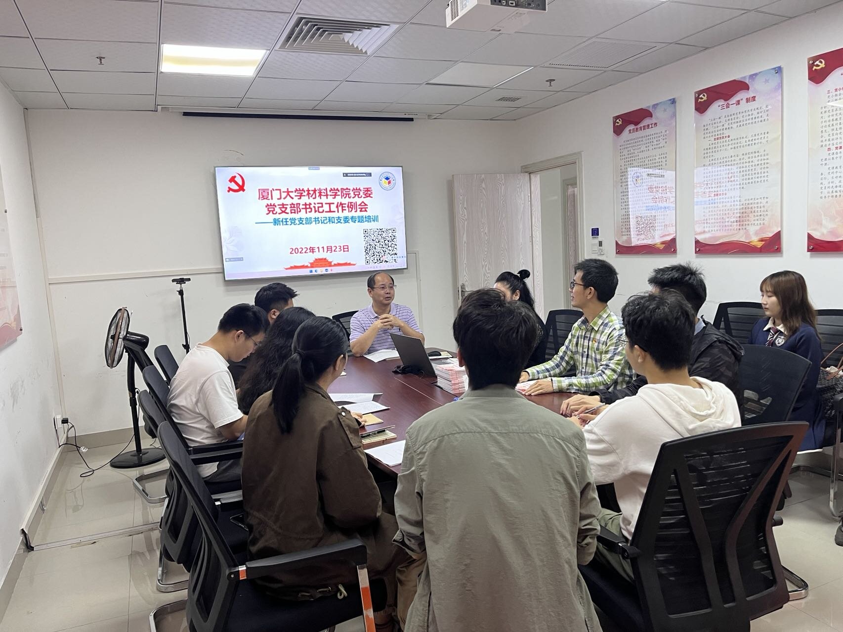 2022年11月23日,永利集团3044官网欢迎您党委党支部书记工作例会暨新任党支部书记和支委专题培训在永利集团3044官网欢迎您新楼101会议室举行。学院党委书记刘立荣、党务秘书苏婵和团委书记石林伟与各位新任党支部书记和支委深入学习交流,讨论支部工作,与新任学生党员干部分享工作经验。