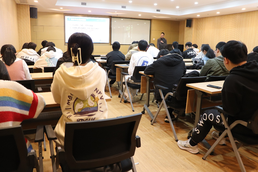 在讲座中,廖老师围绕考研概况与难度分析、考研院校专业解析、考研各科备考策略三个方面进行了讲解指导,建议同学们根据各自目标院校的具体要求,有针对性地做好准备工作。面对不同条件的考研学生,他提供了几种相应的院校选择方法,并强调在报考过程中,不可唯分数论,而应结合个人水平、院校专业的评估数据等方面综合考虑。最后,廖老师具体分析了考研初试的几个科目,为同学们分享各个科目的备考经验,使大家能够更有针对性地为考研进行复习。