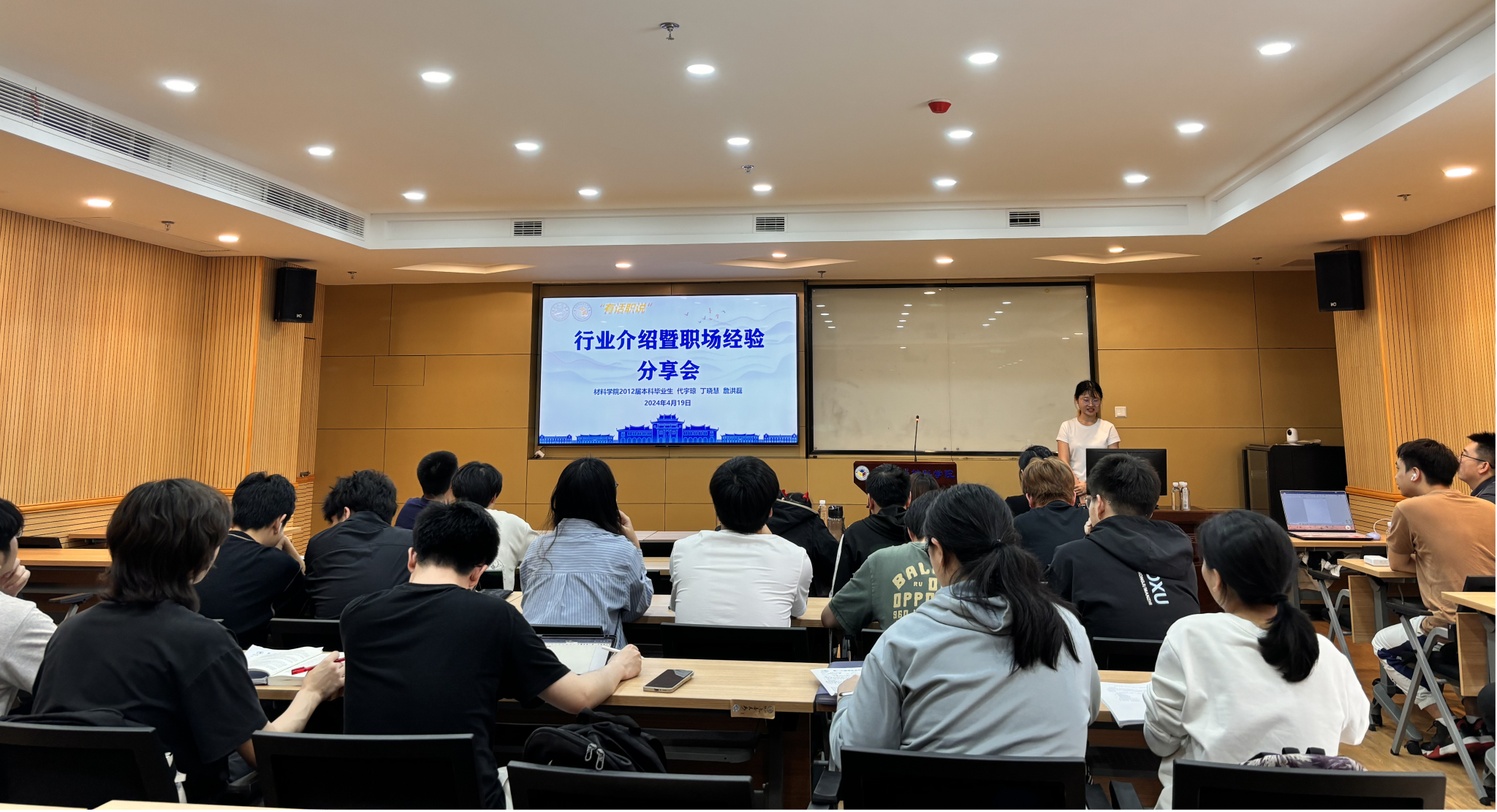 4月19日下午,永利集团3044官网欢迎您在多媒体教室举办材料相关行业介绍暨职场经验分享会,本次活动邀请了三位优秀的2012届院友代宇琼、丁晓慧、詹洪磊作为分享嘉宾。