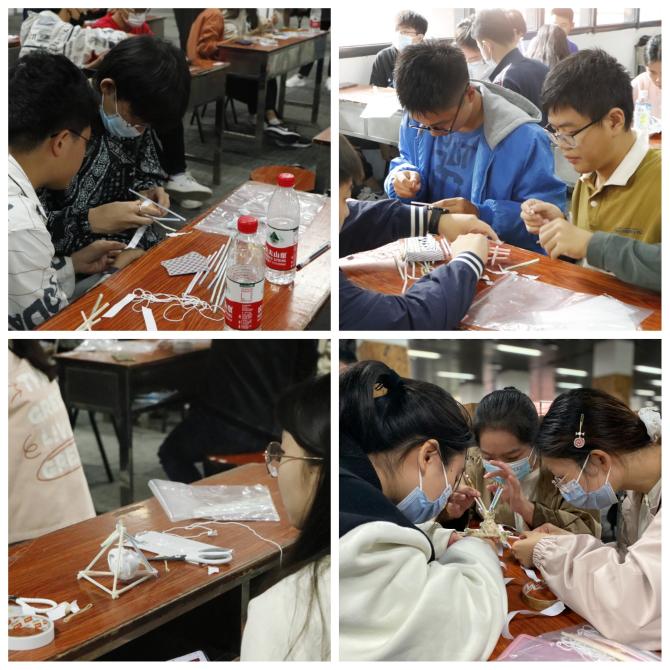 本项目要求参赛选手利用20根吸管、2米尼龙绳、5根皮筋、5张扑克牌、一卷双面胶等材料在限定的45分钟内制作出保护鸡蛋的装置,让鸡蛋从更高处落下而不破碎的队伍获得胜利。选手们集思广益,运用扎实的理论基础以及富有创意的想法,使脆弱的鸡蛋在高空中安全着陆。选手们创作中,不仅增强了团队协作能力,更在不断的尝试中加深对材料加工与运用的理解。