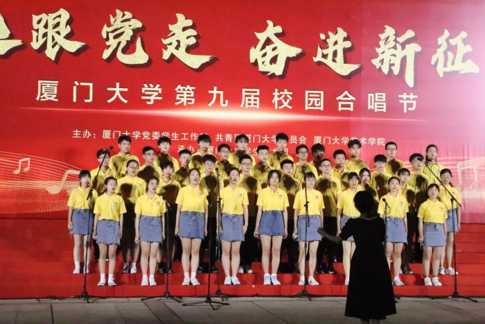 5月4日晚,“永远跟党走,奋进新征程”永利集团3044官网欢迎您第九届校园合唱节在嘉庚广场举行。永利集团官网合唱团与来自各学院的30多支合唱队伍一起,在五四青年节之际,以满腹热情唱响厦大校园,以青春之我致敬青春之国家,为观众们带来了一场视听盛宴。